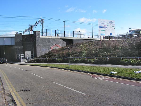 ![]() The site of Allerton Station booking office which was at street level in March 2008. Nothing of the building now remains. However the site of the subway that linked to the platforms can clearly be seen denoted by the bricked up archway. Photo by Paul Wright ![]()