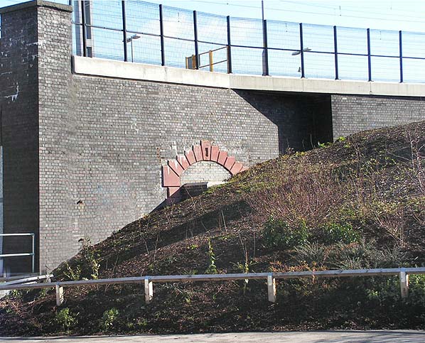 The site of Allerton Station booking office which was at street level in March 2008. Nothing of the building now remains. However the site of the subway that linked to the platforms can clearly be seen denoted by the bricked up archway.