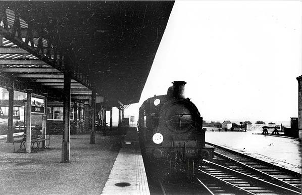 The platform was extended to the south and converted into an island with a second platform line being brought into use on the site of the former siding. A metal pillar water tower with a pitched roof was provided on the platform at the south end. The canopy was also lengthened by adding a completely new ‘W’ section canopy at the south end of the station building. In order to accommodate this canopy, the signal box had to be modified. It lost its pitched roof, its sides were extended up to the underside of the canopy and it was extended closer to the station building. The track layout controlled by the box was further altered by the provision of a run-round loop on both platform lines and two goods sidings on the east side of the platform, passing either side of a short goods dock with a surface constructed from old sleepers. A turntable was provided at the south end of the station on the east side. A large through goods shed clad in asbestos, with an awning on the east side, was also built at this time. It seems unnecessarily large and confirmed the Southern Railways anticipation of substantial growth which never materialised. Brian Hart commented in his bookThe Hundred of Hoo Railway, 'quite possibly the Allhallows goods shed ranked as the ugliest ever built'. The yard also had a 1 ton 10 cwt capacity crane. A tea room was built in front of the station between the booking office and Avery Way.