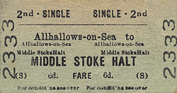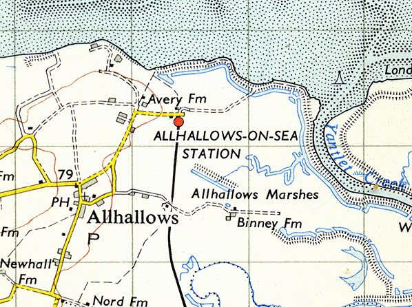 Notes: In June 1929 a Ministry of Transport railway order was obtained by the Southern Railway (SR) and construction began in August 1931. The branch line to Allhallows was 1¾ miles long, joining the existing line between Middle Stoke and Grain Crossing halts. Like the line to Port Victoria, the connection with Allhallows would also consist of a single track.