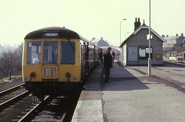 Alston train standing at Haltwhistle Station in Spring 1976