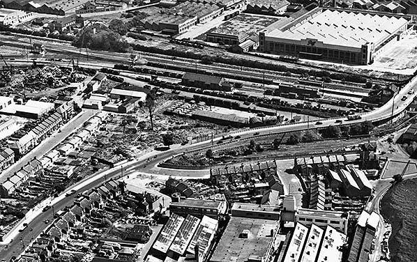 The 1956 Railway Clearing House Handbook of Stations lists private sidings for Dusmo Ltd, Eastern Gas Board, Eley Brothers, Glover & Main, Thomas Glover & Co, R Main Ltd, Ready Mixed Concrete Ltd and Simplex Concrete Piles Ltd. The original yard crane had, by this time, been replaced by an 8 ton capacity crane. Edmonton council began to put up housing in the area in the 1930s and chose Angel Road as a prime zone for the building of tower blocks in the early 1960s.