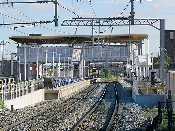 The unopened Meridian Water station seen from the down platform at Angel Road station on
