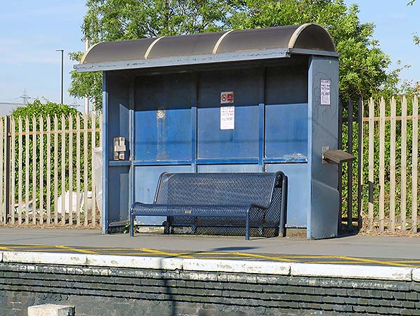 Greater Anglia waiting shelter. Compare with the grim enclosed shelters that were in use in the 1970s.