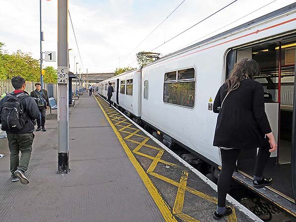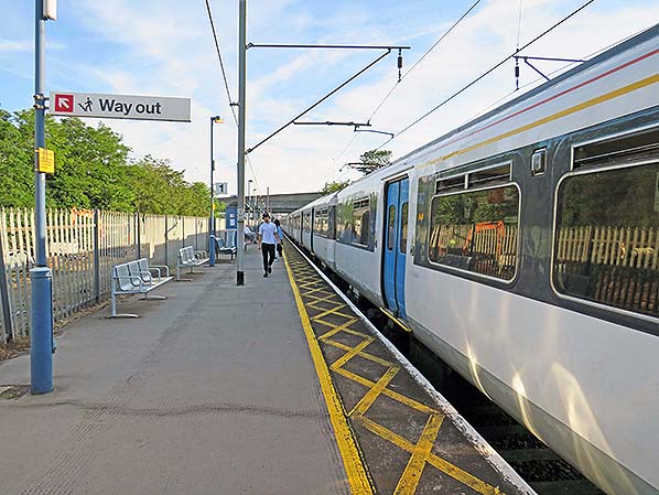 ![]() A Bishops Stortford service waits at Angel Road station on 31 May 2019. The train only carried a handful of passengers for Angel Road.