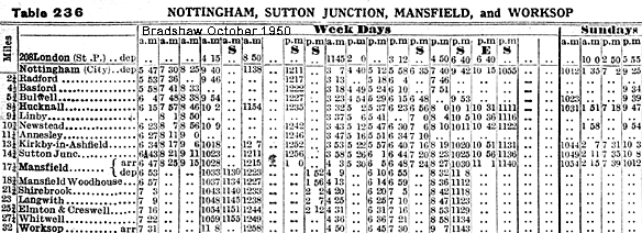between Mansfield and Worksop; initially the trains ran through to Retford but the service was eventually cut back to Worksop. The passenger service consisted of three Midland Railway trains between Mansfield and Worksop with a journey time of 40 minutes and three Manchester Sheffield & Lincolnshire trains between Mansfield and Sheffield with a journey time of 75 minutes.