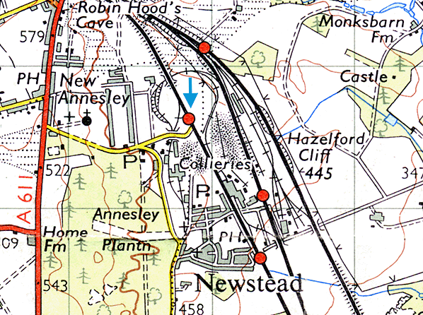When plans for the Robin Hood Line were drawn up, it was decided to stay with the GNR route through Kirkby-in-Ashfield then swing south-east via Kirkby South Junction onto the former Great Central Railway main line from Manchester to London. After briefly following the GCR, the line then climbed to re-join the Midland route to Nottingham, to allow reconnection at Newstead.