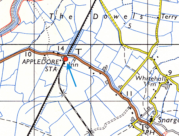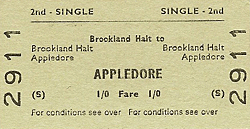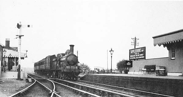 Notes: The Lydd branch opened 30 years after Appledore Station. No separate bay platform was provided. In later years most trains terminated at Ashford but trains terminating at Appledore were shunted into the goods yards where running round was possible. The moderately sized goods yard was on the up side of the station