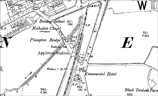 Notes: Appleton Station was situated on the St Helens & Runcorn Gap Railway’s (SH&RGR) line which ran southward from St Helens to the banks of the Mersey at Widnes. The station was less than half-a-mile to the east of Appleton village which, by the latter half of the nineteenth century, had become a district of the town of Widnes.