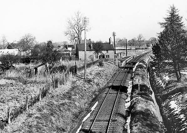 Looking north at Arddleen Halt from the A483 overbridge in 1963.