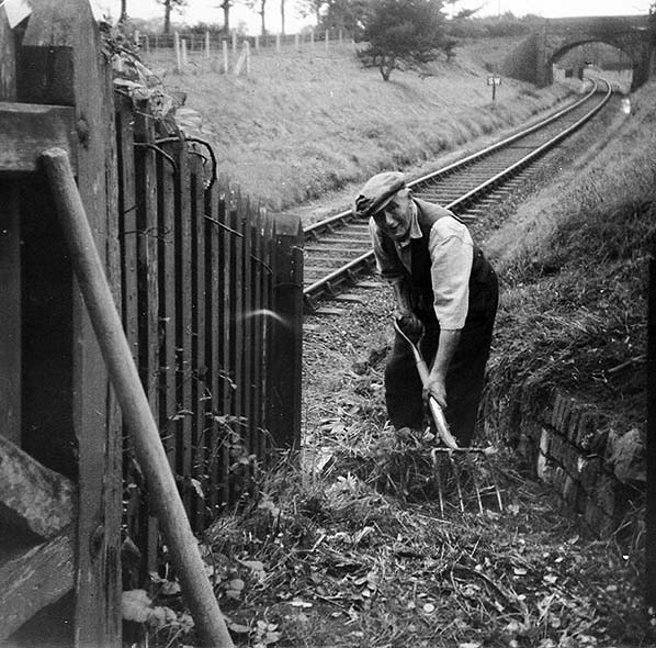 ![]() Work in progress at the south end of the Arddleen Halt platform in June 1954.