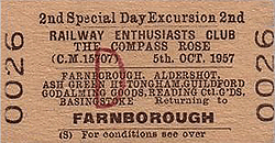 The Railway Enthusiasts' Club ran another special to Ash Green and Tongham on 5 October 1957, which was called ‘The Compass Rose’ and was pulled by Drummond M7 class 0-4-4T No. 33051 and covered goods-only lines and little-used spurs in Hampshire, Surrey and Berkshire.
