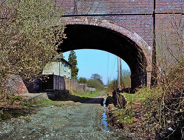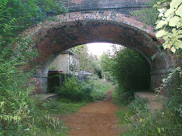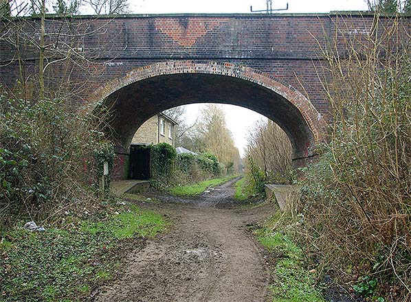 ![]() ![]() Looking east from White Street bridge in April 2015. The footpath runs to Drovers Way bridge which is seen in the distance. Beyond that an unofficial footpath runs to Ash Junction.