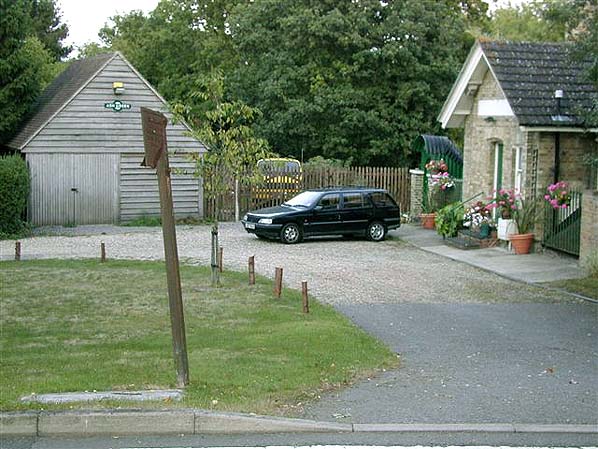 ![]() ![]() Ash Green station forecourt seen from White Street in May 2003. Note the Ash Green Southern Raiilway target sign that has been fixed to the timber garage. A broken Southern Railway cast iron trespass sign is seen in the foreground.