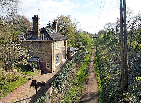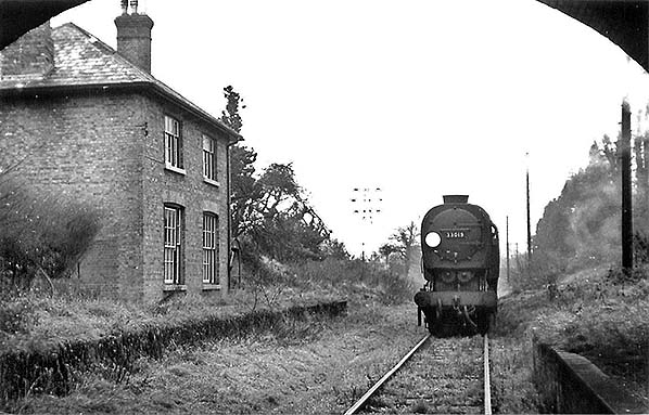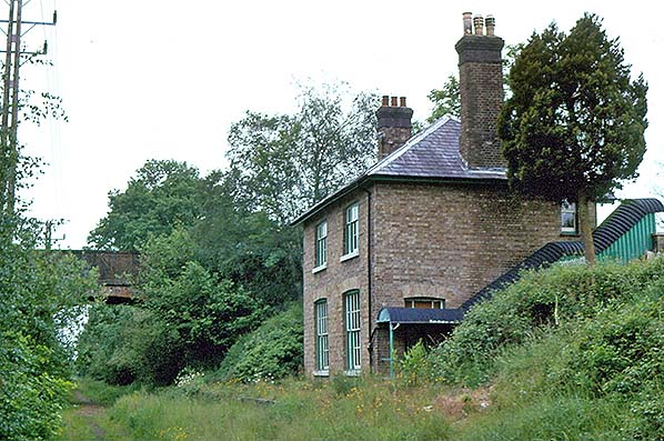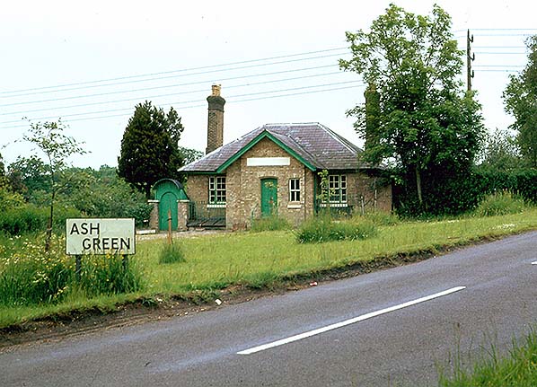 Photo by Nick Catford ![]() ![]() Ash Greeen Halt looking west from the down platform in June 1977. The station building has been in continuous occupation and remains in good condition and largely unaltered to this day. The entrance to the booking office was through the double-doors at the bottom of the stairs.