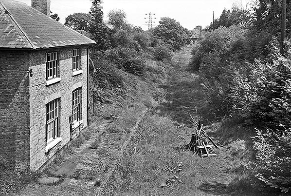 ![]() Ash Green Halt looking east from White Lane bridge in October 1967. Once the track was lifted and the ballast removed nature was quick to take over.