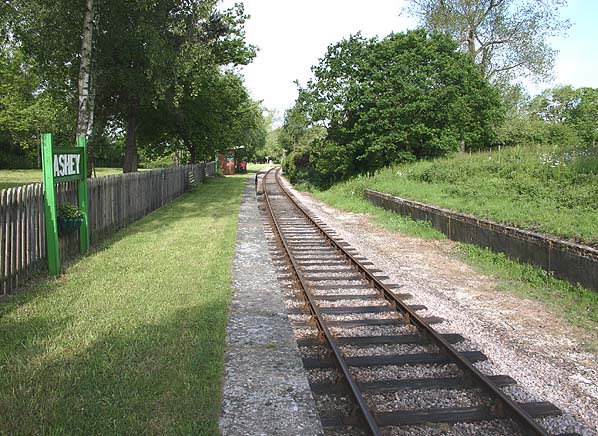 Ashey Station in June 2005. The track has been re-laid and the up platform has been restored and reopened as part of the Isle of Wight Steam Railway. The 1926 extension can be seen on the right. Photo by Nick Catford