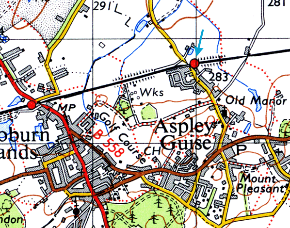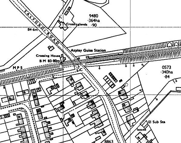 Notes: The London & North Western Railway opened Aspley Guise station in 1905 to cater for the new rail-motor service between Bletchley and Bedford which was inaugurated on 1 December 1905; it was one of seven new halts. The exact opening date is unclear. One LNWR record states that the 'rail motor-car has been operating between Bletchley and Bedford since 30 October'. Railway Magazine (December 1905) reports that the service was planned to start on 1 November and was delayed at the last minute because of its unreliability, and a 1 December re-start is mentioned. Other contemporary documents and publications are contradictory. As built, Aspley Guise was very basic with a 50ft low platform constructed of old sleepers at rail level with a nameboard and one oil lamp but no shelter. The rail-motors were fitted with folding steps for passengers boarding or alighting at Aspley Guise and the other halts.