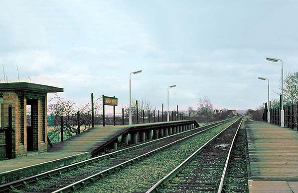 With the introduction of DMUs in 1959 the original platforms were replaced with longer platforms of conventional height, but still timber-built. A section of the original down platform with the waiting room was retained.