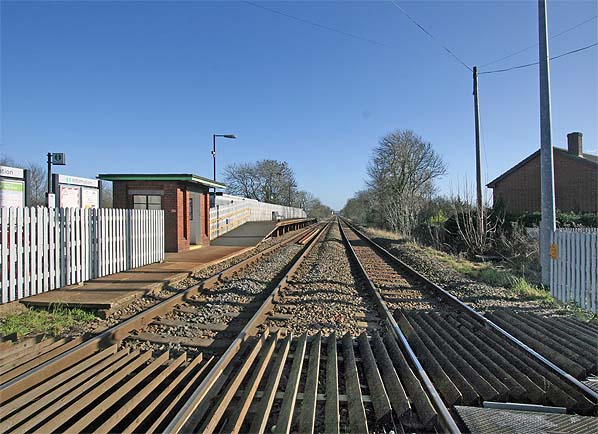 ![]() Station Name: ASPLEY GUISE Station still open but included for completeness ![]() Aspley Guise station Bedford platform looking east in February 2014. The Bletchley platform has now been relocated to the west side of the level crossing. The station still has only very basic facilities; these have been reduced since the station has come under the control of London Midland.