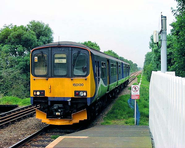 ![]() Station Name: ASPLEY GUISE Station still open but included for completeness ![]() Class 150 DMU 50130 arriving at the up platform at Aspley Guise with a Silverlink Trains Bedford - Bletchley service on 27 June 2003. Despite the newly fitted fencing the platform was demolished the following year and replaced with a new up platform on the other side of the crossing.