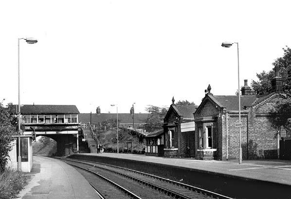 In 1974 Backworth station is seen from the down platform. The original stationmaster’s house and offices which stood by the road have been removed, but the former booking office – now used as waiting rooms – and the booking office in the overtrack building are still in place. BR (Eastern Region) has installed its favourite obtrusive lamp standards which now dominate the view.
