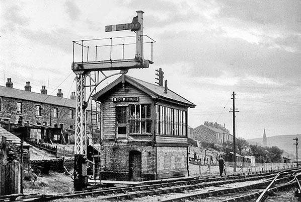 Bacup Shed signal box was built in 1925 to replace the original structure of 1881/82. This box, photographed in 1956, is a size E LNWR Type 5 with a 24-lever frame. It had closed sometime between 11 October 1954 and 13 June 1955. The box made a cameo appearance, standing in a derelict state, in the celebrated film ‘Whistle down the wind’ in 1960/61.