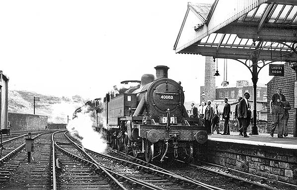 On 28 July 1962 the ‘Salford Hundred Rail Tour’’ visited Bacup station. Earlier in the day the excursion had made its way as far as it could on the old Rochdale – Bacup line which since 1952 had been closed north of Facit. The train was hauled by No.40063 (seen here) and Aspinall 52523. No.40063 had been taken out of store at Bolton shed especially to work this train. The Fowler-designed 2-6-2T Class 3P was built in September 1932 at the LMS Derby works and allocated number 563. Shortly after her excursion to Bacup she was withdrawn from 26A, Newton Heath shed, on 8 September 1962 to be cut up at BR Horwich works the following month.