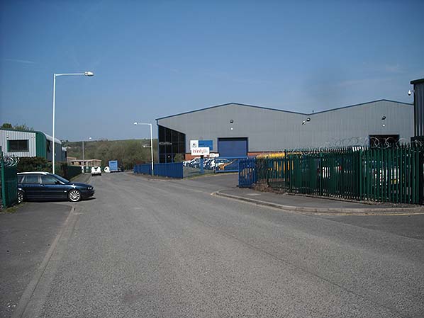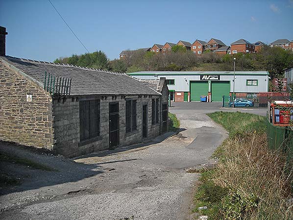 taken in May 2016. Photo by Alan Young ![]() Looking north-west in New Line Industrial Estate, Bacup, in May 2016. The road approximately follows the course of the old Rochdale – Bacup railway, and the engine shed was ahead and to the right. The Bacup (or Newline) Tunnel is behind the photographer.