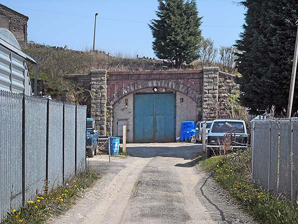 In May 2016 this is the north-west portal of Britannia, or New Line, Tunnel, now within an industrial site. In recent years the tunnel was offered for sale by a local estate agent.