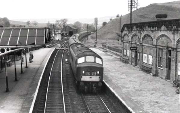 ![]() Looking north from the footbridge at Bakewell station in 1966 as a southbound London St. Pancras service passes through. By this date the station had lost the canopy from the southbound platform.