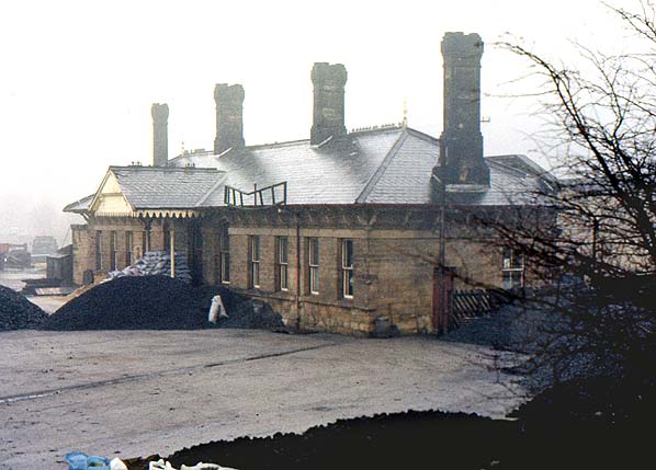 ![]() Bakewell station forecourt in February 1976. Although the station has been closed for some years at least one coal merchant is still in business in the goods yard. Photo by Alan Young