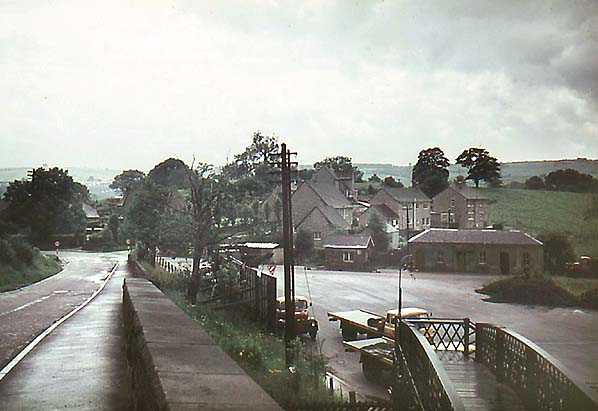 Bakewell station forecourt seen from Station Road bridge; the goods office is seen on the rigtht with the weigh office to its left.