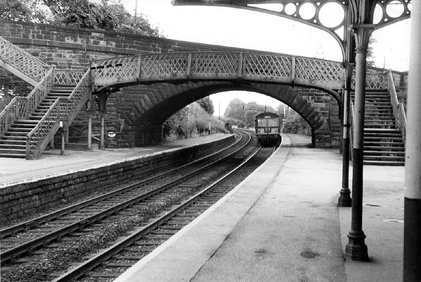 DMU arriving on down stopping train at Bakewell in 1966.