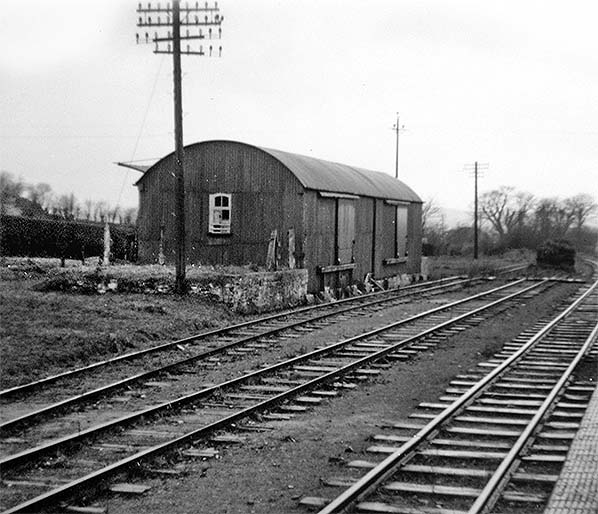 Copyright photo by Michael Bunch from the Donegal Railway Heritage Centre collection ![]() Looking north-east along the platform at Ballymagorry towards Derry/Londonderry on 10 December 1955. The station had been closed to passenger and goods services for almost a year. It had seen its last train almost six months earlier. Copyright photo by Michael Bunch from the Donegal Railway Heritage Centre collection ![]() The Ballymagorry station goods store seen from the station platform after closure on 10 December 1955. Ballymagorry had retained its goods facilities right up until closure. Copyright photo by Michael Bunch from the Donegal Railway Heritage Centre collection ![]() A view looking south-west towards the Ballymagorry station goods store on 16 August 2020. Photo by Jim McBride ![]()