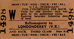 The UTA announced its intention to close the line between Londonderry Victoria Road and Strabane in October 1954. The last trains ran on 31 December 1954. The very last passenger departure from Ballymagorry was a down train that departed for Strabane at 7.45pm.