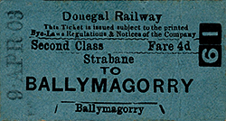 Ballymagorry is a small settlement in County Tyrone, Ireland 11¾ miles to the south of the city of Derry/Londonderry. On 7 August 1896 the Donegal Railway (DR) obtained an act to build a 14½ mile single track 3ft gauge railway between Strabane and the Waterside area that lay on the eastern bank of the Foyle opposite Derry/Londonderry. The course of the line passed to the east of Ballymagorry and a station was provided a short distance to the south-east of the settlement to which it was linked by Station Road. In 1896 the DR had a 74 mile network of 3ft gauge railways that had Strabane as their easternmost point. To get goods and passengers to and from the important city of Derry/Londonderry required the use of the Great Northern Railway Ireland (GNRI) 5ft 3inch gauge line between Strabane and Londonderry Foyle Road. Financially this situation was to the detriment of the DR and to the advantage of the GNRI, which was the primary reason for the line.