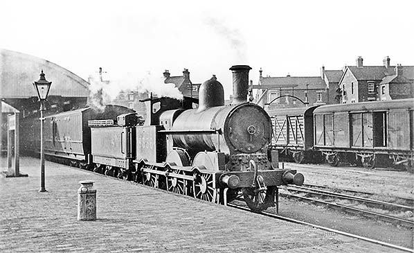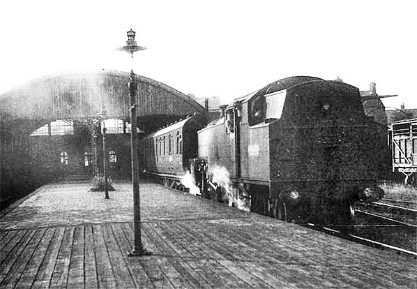 Banbury Merton Street Station Gallery 1: c1930 - May 1951 ![]() A Cauliflower at Banbury. 'Cauliflower' was the nickname given to these LNWR Webb 0-6-0 locomotives more properly known as the '18in Goods' (a reference to cylinder diameter). The nickname is said to derive from LNWR days when these locomotives bore the company crest on the splashers above the centre axle, the crest supposedly resembling a cauliflower when viewed from anything but close quarters. Truth or not the nickname stuck, as they tend to do with railway locomotives, for the entire existence of the class. Here is No.8336, being supervised by a milk churn, in early LMS years but no earlier than 1927. Like many steam locomotives intended for goods traffic, providing they were vacuum fitted they could and did also turn up on passenger and parcels trains. Behind No.8336 is an ex-LNWR bogie Full Brake. The vehicle behind it is visible but unidentifiable so whether this was a passenger or totally parcels train has to remain a mystery. The chest apparently perched on top of the tender is a toolbox. The design of the locomotive and, arguably, more so the tender, gives away the locomotive's age. She was built at Crewe in 1882 and emerged as LNWR No.2466, becoming LMS No.8336 in 1927. She was withdrawn in 1936 but other class members went on to see British Railways, largely because of WWII, with the final survivors bowing out at the end of 1955. Curiously two which survived to see BR were LMS 8335 and 8337 which became BR 58364/5 and survived until 1951 and 1952 respectively, their numerical 'come between' having by then long gone. Just visible far left is Merton Street's running-in board. This is the original type LNWR board which would at some point in time be replaced, along with others on the station, by the LMS 'Hawkeye' style which were destined to remain in place until the station closed. On the right, beneath the loading gauge, is what appears to be an LMS milk van and probably a 6-wheeler. These vehicles were loaded with churns, had slatted bodysides for ventilation and were often also used for fruit traffic. Many survived into BR days but by then used mainly