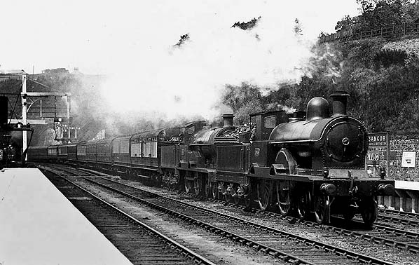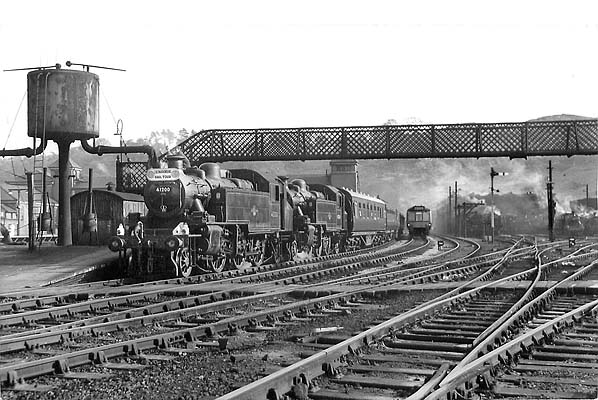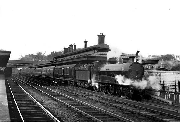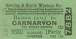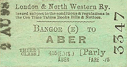 Copyright photo from the John Mann collection ![]() A LNWR westbound express is seen passing through Bangor on the up fast through line in 1920.