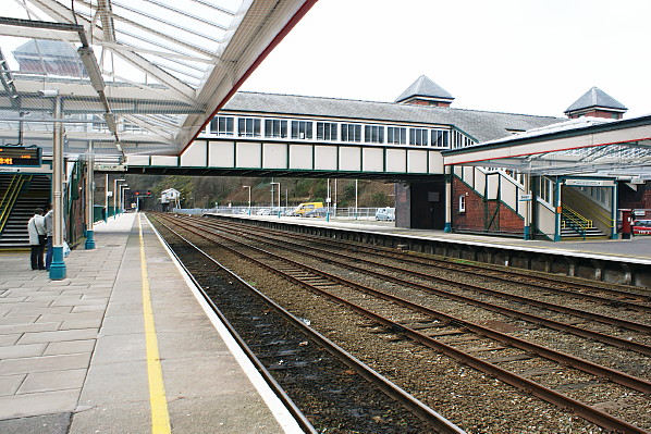 Bangor station looking north-west from the down platform on 31 January 2013.