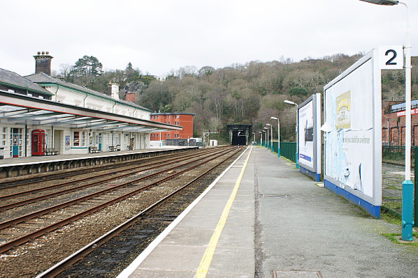 A view looking south-east along the down platform at Bangor on 31 January 2013. This platform had previously been an island with two through lines. When this view was taken there was