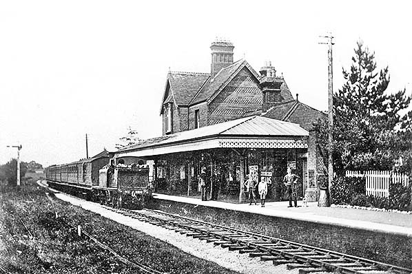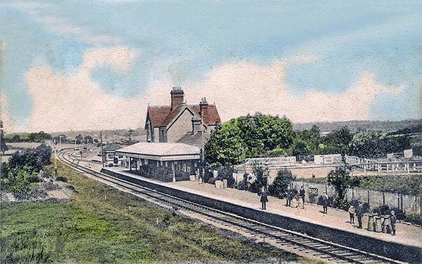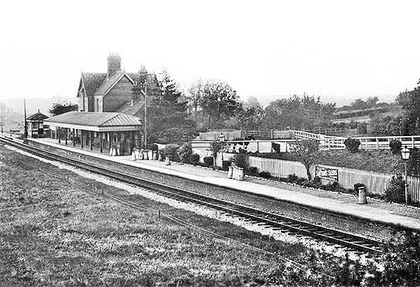 Copyright photo from John Alsop collection ![]() Another view, undated but probably c1905, looking north-east at the station. On this occasion there was some activity with passengers waiting beneath the canopy and what appears to be quantity of luggage. As always for the time, milk churns are also present. Note that the fencing has become dilapidated although no doubt repairs would have been undertaken from time to time. At extreme left a train can be seen approaching the station. It is somewhat unfortunate that only part of the locomotive can be seen as it's full headcode display is out of view. Nevertheless it can be seen to be carrying a diamond plate on the left hand end of its bufferbeam. Headcode arrays changed from time to time as needs dictated but it is known that for the East Grinstead - Lewes line the use of a diamond at the position seen here ceased in 1917. This, therefore, would indicated the latest year in which the photograph could have been taken.