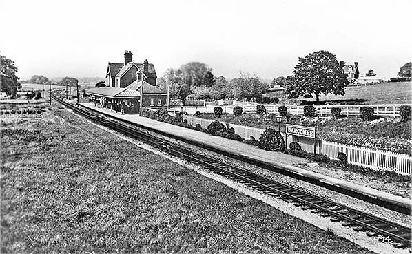 Copyright photo from John Alsop collection ![]() Looking north toward the station building from the sloping approach road on an unknown date. The general atmosphere of the photograph would suggest before WW2. The goods facilities including the cattle pens can be seen on the right. At the top of the approach road, behind the camera, once stood a rather charming gas lamp which bore lamp tablets announcing "Railway Station". The photographer was standing upon what is now a private road and although the station environs have changed completely the building itself has changed little. In Barcombe station house on 15 March 1908 was born one Bernard Holden, his father being stationmaster at the time. Bernard went on to become a professional railwayman and a founder member, later President, of what is now the Bluebell Railway. Bernard John Holden MBE passed away on 4 October 2012 aged 104 years. His funeral took place at Ditchling, home of the late Dame Vera Lynn who was a friend of Bernard, and his funeral procession included a journey by train from Sheffield Park to Kingscote.