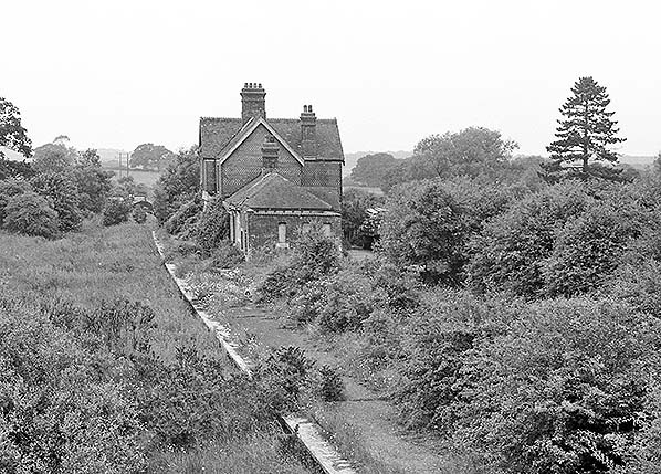 Photo by Nick Catford ![]() ![]() The usual view from the bridge looking north-west in September 1969. Platform edge stones appear to have been removed. A car is seen on the station forecourt once again suggesting the building might have a new occupant.