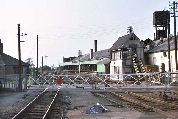 Looking north from Bardney station in September 1970. Morrell's canning factory with its long loading dock can be seen on the far side of the level crossing.