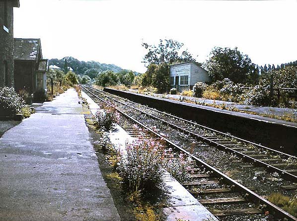 Bardsey station looking south along the up platform in September 1965, 20 months after closure. Most of the stations on the Cross Gates line had a standard NER waiting shelter like the one seen here on the up platform.