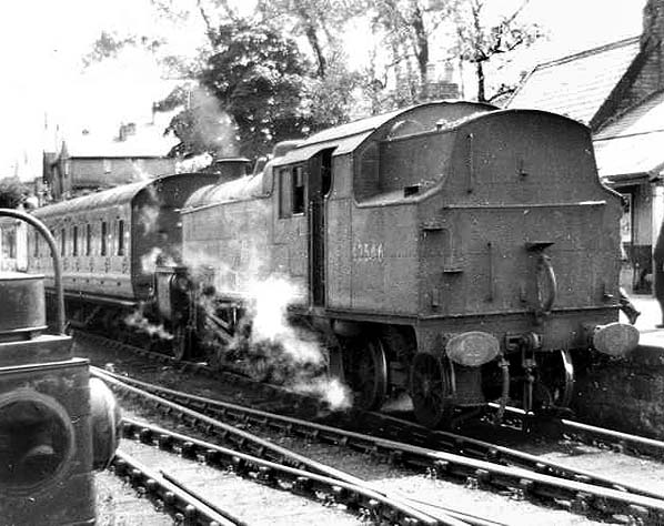 27 June 1961. The loco 42546, a Stanier-designed 2-6-4 passenger tank. Built by the North British Loco Co. Glasgow, it entered service on 27 June 1936 and had a working life that included spells at Accrington, Rose Grove and Lostock Hall from where it was withdrawn on 1 April and broken up by Campbells of Airdrie in December that year. Photo from Robin Higgins