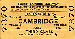 By 1922 the timetable showed just three trains per day operating via Burwell, with the first down train not departing from Cambridge until 10.30am. There was, however, an earlier service to Mildenhall via Newmarket which left Cambridge at 6.47am.