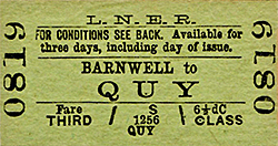 The LNER viewed the former GER system it had inherited as something of a millstone around its neck and considered the withdrawal of a number of branch passenger services in the east of England. At around the same time the LNER made further economies by reducing the status of Quy and Swaffham Prior signal boxes to shunting frames. In 1935 these two boxes were abolished altogether and at the same time the goods loops through these stations were lifted.
