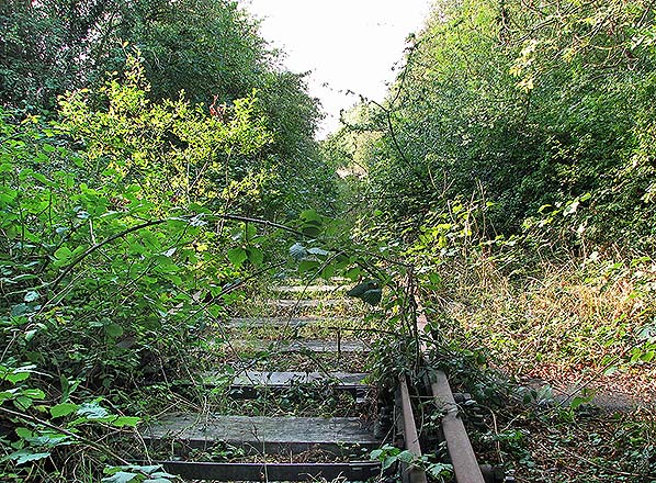[Source: Darren Kitson] ![]() On safari in October 2011 we see the situation with the surviving section of track between Barnwell Junction and Fen Ditton. The view is looking towards Barnwell and the points in the foreground mark the start of the oil terminal sidings. 150 yds behind the camera are gates marking the entrance to the oil terminal and after a further 100 yds the track ends. Fen Ditton Halt was located a further 900 yards beyond the buffer-stops. The photographer is standing 700 yards from the physical junction at Barnwell, thus the surviving section of the Mildenhall branch is a mere 950 yds long. Photo by John Sutton reproduced from Geograph under creative commons licence